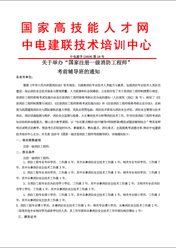 关于举办“国家注册一级消防工程师” 考前辅导班的通知